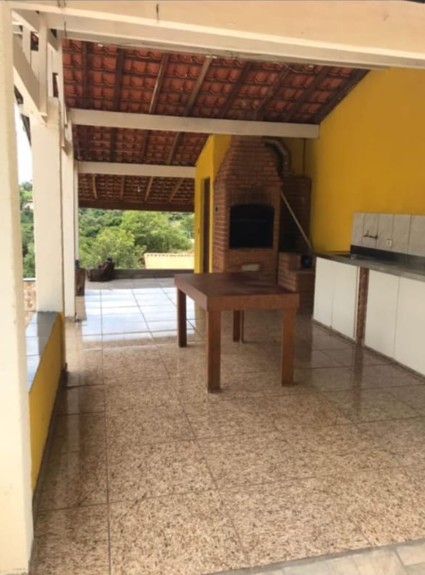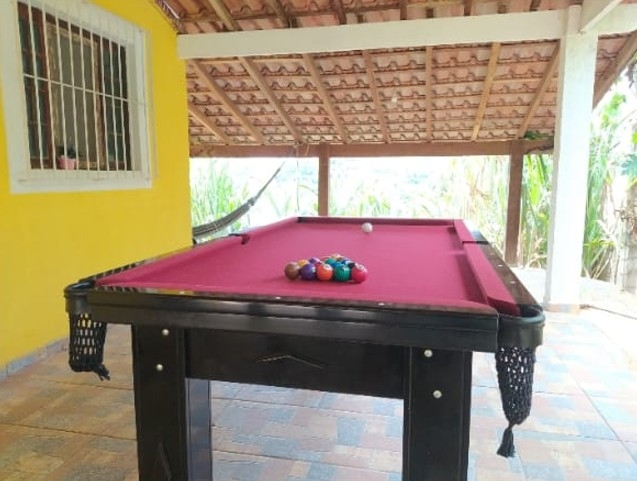 A chácara possui 3 dormitórios com acomodações para 20 pessoas. Sala ampla com 01 sofá cama de casal, 01 jogo de sofá e TV smart 55 polegadas. Cozinha completa, área de churrasco com churrasqueira, fogão a lenha, mesa de madeira grande com dois bancos.