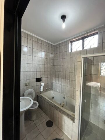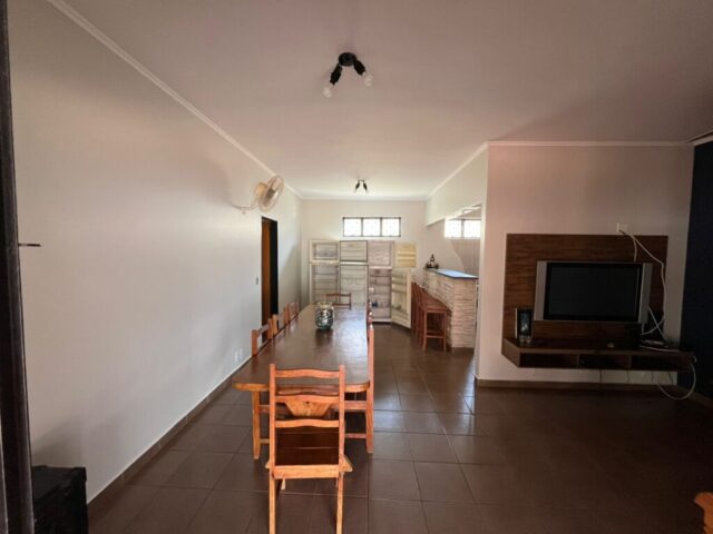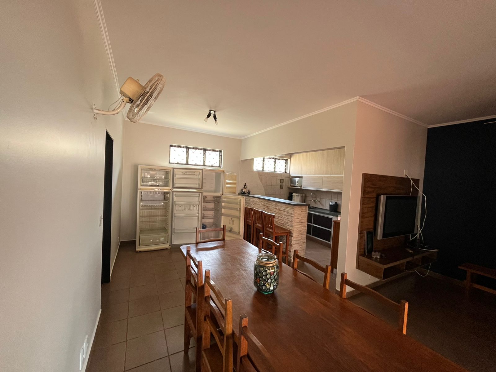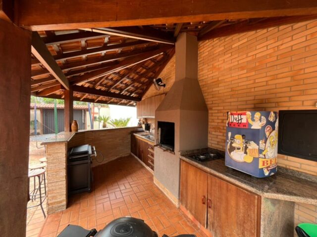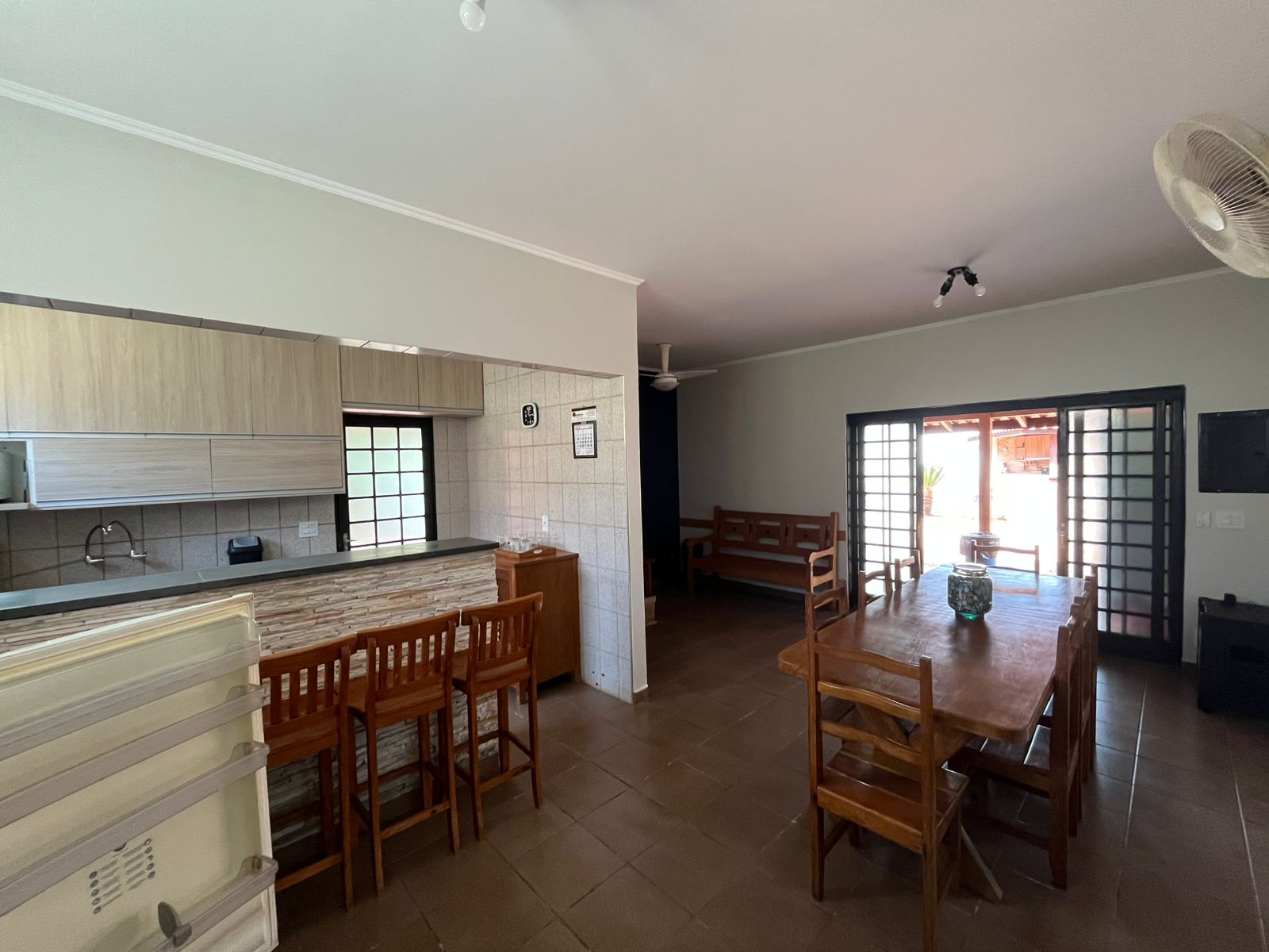 A chácara possui 03 quartos com acomodações para 10 pessoas. Sala com sofá e televisão. Cozinha completa com fogão, cooktop, fogão industrial, purificador de água, 02 geladeiras e freezer. Varanda com churrasqueira, chopeira elétrica, 6 jogos de mesa de plástico com 26 cadeiras. Capacidade para aproximadamente 60 pessoas.