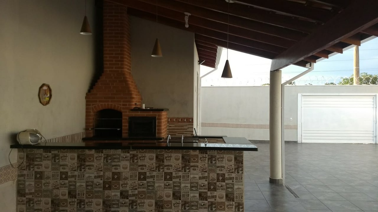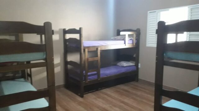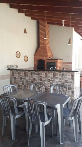 O espaço possui 02 dormitórios sendo 01 suíte que acomoda até 08 pessoas para dormir em camas. Sala com sofá e televisão. Cozinha com geladeira e fogão a gás. Varanda com churrasqueira, bancada, fogão e forno a lenha, freezer, cervejeira. Banheiros masculinos e femininos na área interna e externa.